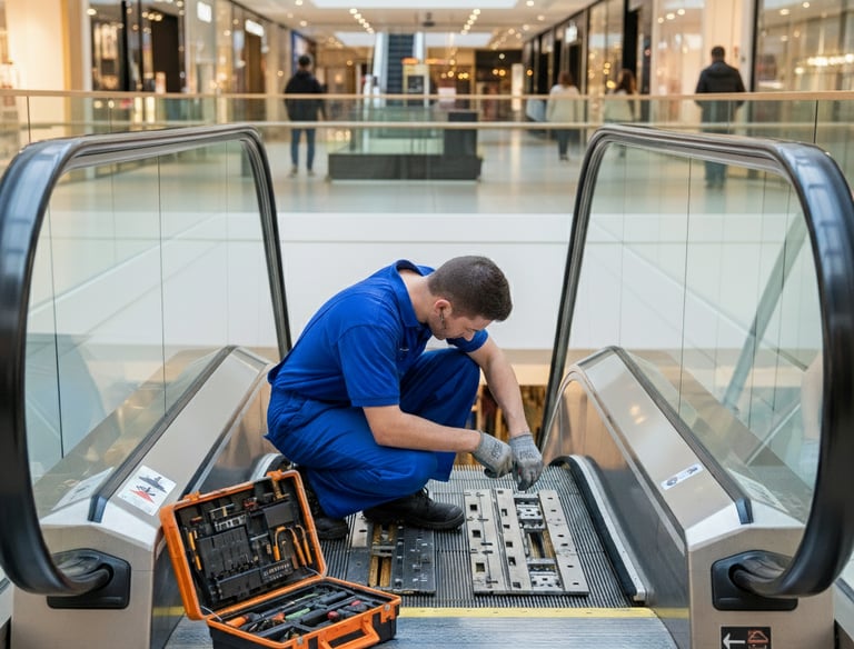 Conservação e manutenção de escadas rolantes para um funcionamento seguro e eficaz.